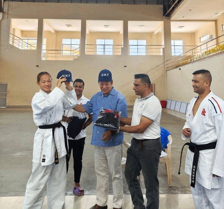 उज्वेकिस्तानमा हुनगईरहेको ए.के.एफ.प्रतियोगितामा सहभागी हुने राष्ट्रिय टिममा रहेर वन्द प्रशिक्षणमा रहेका सम्पुर्ण कराते खेलाडी तथा प्रशिक्षक,अफिशियलहरुलाई खेल पोशाक ट्रयाक सुट र टोपी विरतरण गरेको छ ।